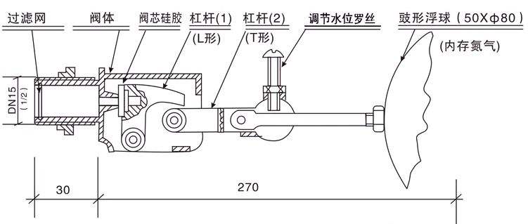 外螺紋銅浮球閥結構圖