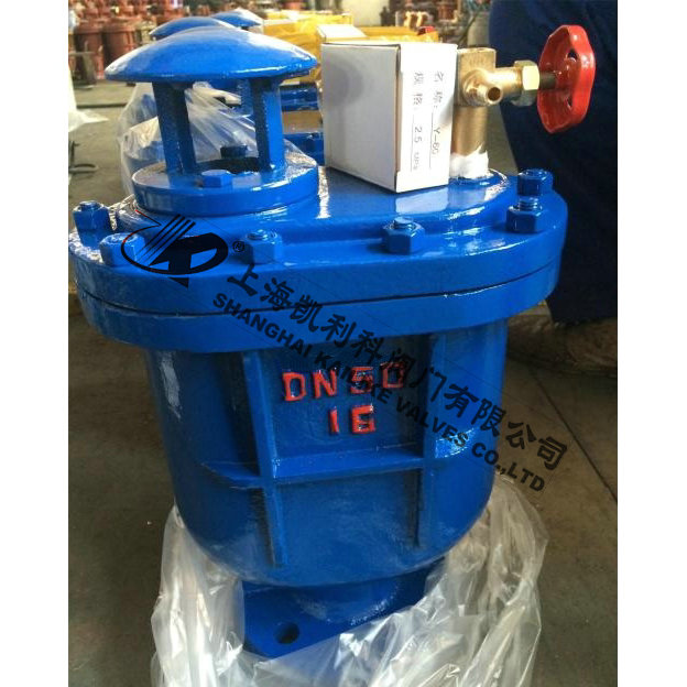 當管內開始注水時,塞頭停留在開啟位置,進行大量排氣,當空氣排完時,閥內積水浮球被浮起,傳動塞頭至關閉位置,停止大量排氣;當管內水正常輸送時,如有少量空氣聚集在閥內到相當程度,閥內水位下降,浮球隨之下降,此時空氣則由小孔排出。當抽水機停止,管內水流空時,或遇管內產生負壓時,此時塞頭開啟,吸入空氣確保管線安全。