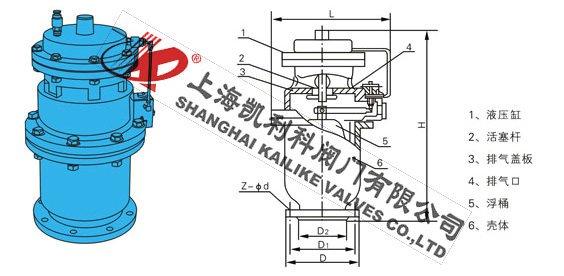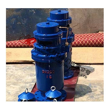QSP全壓高速排氣閥由下閥體,中閥體,浮筒,浮筒桿,閥芯,蓋板,活塞桿,膜片及閥蓋等組成的全壓高速排氣閥,其特征是通過銷軸與浮筒鉸接的浮筒桿可繞主軸轉(zhuǎn)動,并由此實現(xiàn)通過浮筒升降控制閥芯的升降啟閉,即當浮筒下降(閥體里充滿氣體)時,閥芯上升,打開小閥口,并關閉小排氣帽上的排氣口,使氣體通過導管進入液壓罐內(nèi),當浮筒在浮力作用下上升時候,閥芯下降,關閉小閥口,同時打開排氣帽上的排氣口,使液壓罐通過導管,直通大氣泄壓,且當浮筒下降,液壓缸內(nèi)充滿氣體時,閥門上的大排氣口自動關閉。當水泵停止,管內(nèi)水流空時或遇到管內(nèi)產(chǎn)生負壓時,吸入空氣,確保管線安全。