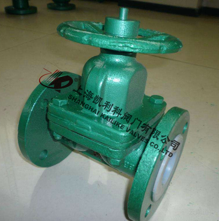 G41F46襯氟隔膜閥將閥體下部內(nèi)腔與閥蓋內(nèi)腔隔開,并與之形成直流通道,使隔膜上部的閥桿、閥瓣等內(nèi)件與介質(zhì)完全隔離,省去填料密封結(jié)構(gòu),介質(zhì)的內(nèi)漏和外漏可同時避免。表面均勻包覆一層FEP。閥體通道內(nèi)表面光滑,流體阻力小,CV值高,流通能力強,扭矩適中,采用四級密封結(jié)構(gòu)并在密封面外配以耐溫抗老化的SI橡膠的彈性襯墊閥座,完全達(dá)到介質(zhì)的零泄漏。